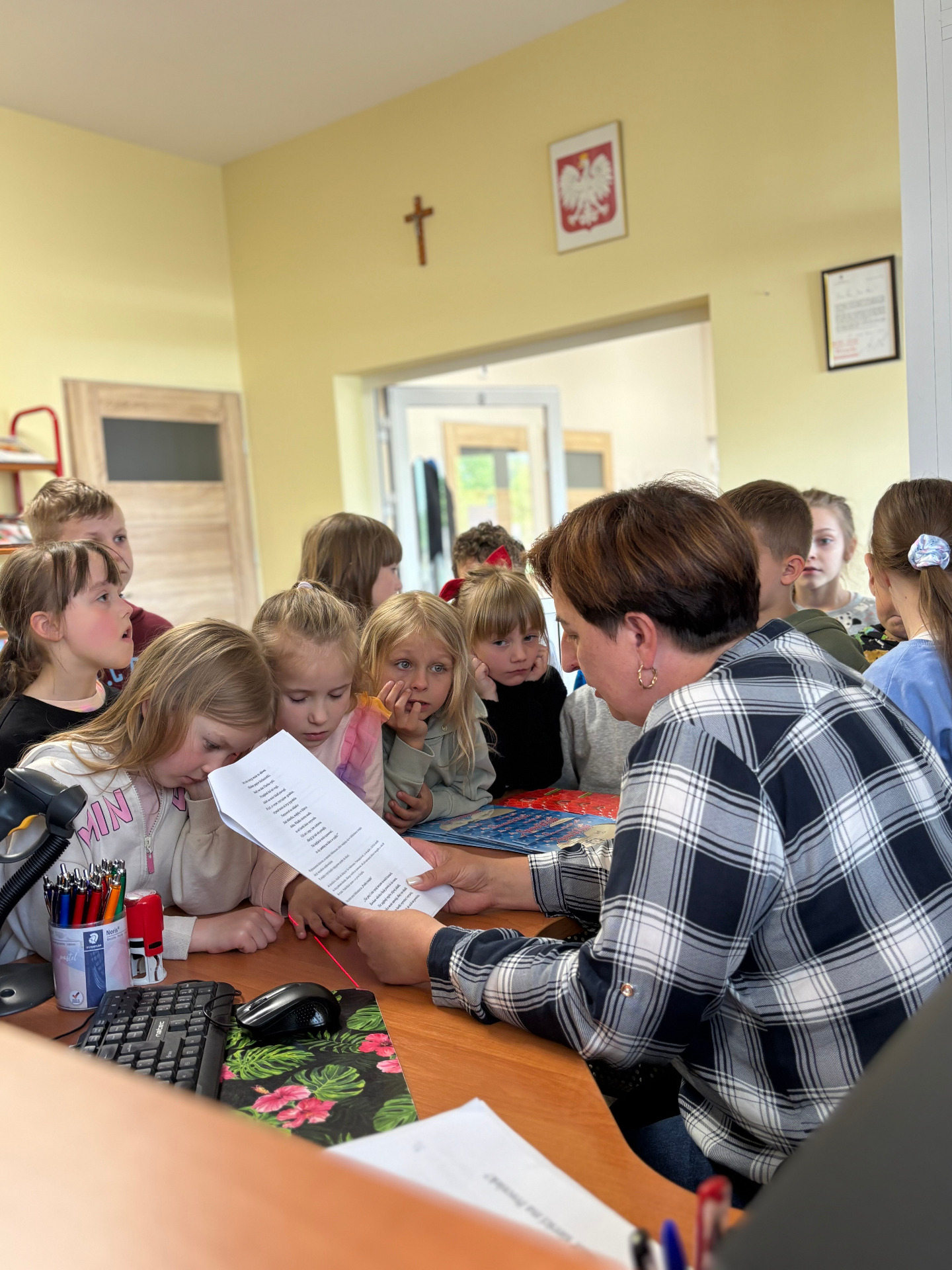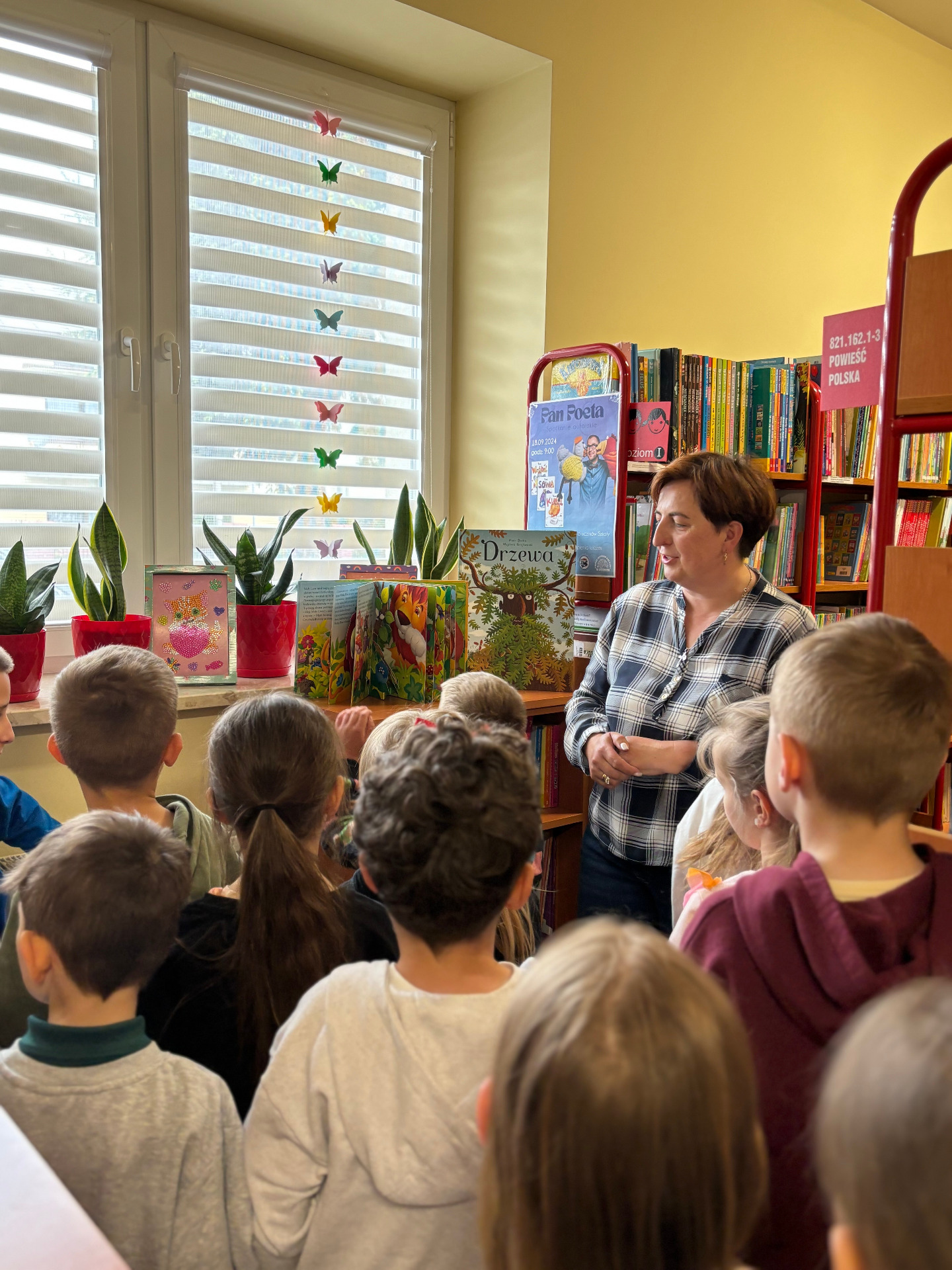 Pierwszaki z wizytą w Publicznej Bibliotece w Groblach