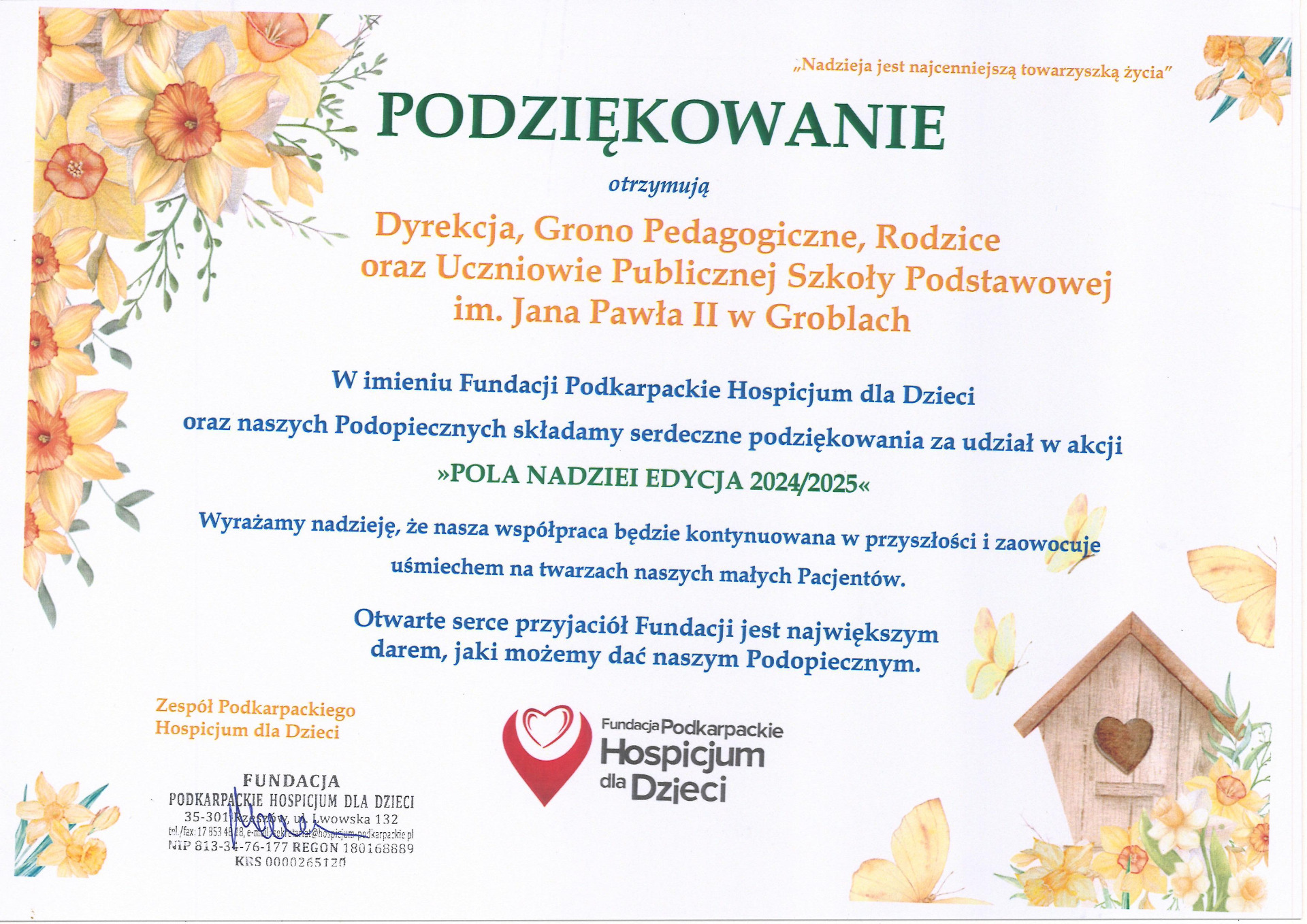 Wspieramy Podkarpackie Hospicjum dla Dzieci w Rzeszowie