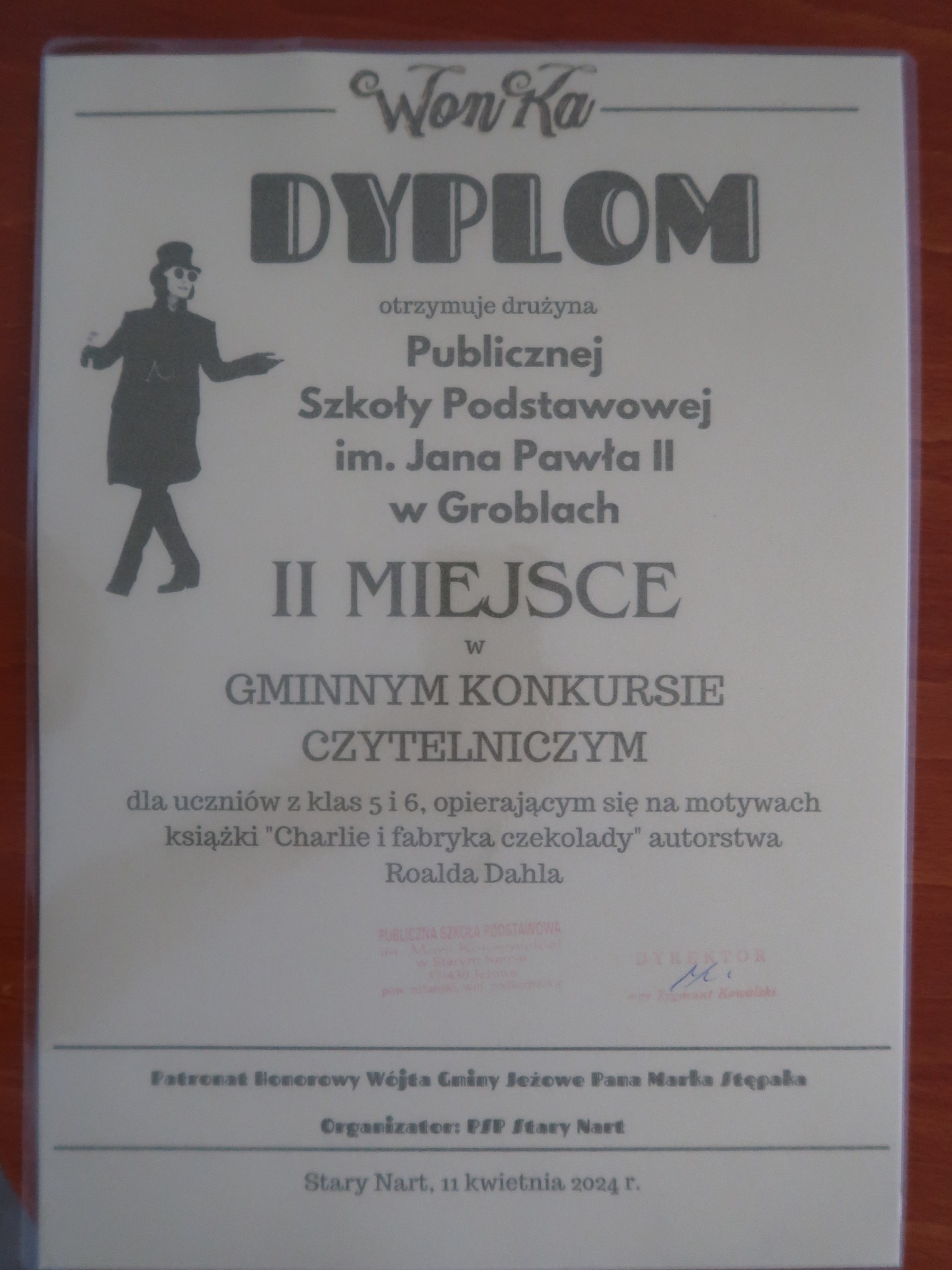 11 kwietnia 2024 r. w Publicznej Szkole Podstawowej im. Marii Konopnickiej w Starym Narcie odbył się XII Gminny Konkurs Czytelniczy. Tym razem uczniowie wykazywali się znajomością książki „Charlie i fabryka czekolady” autorstwa Roalda Dahla.