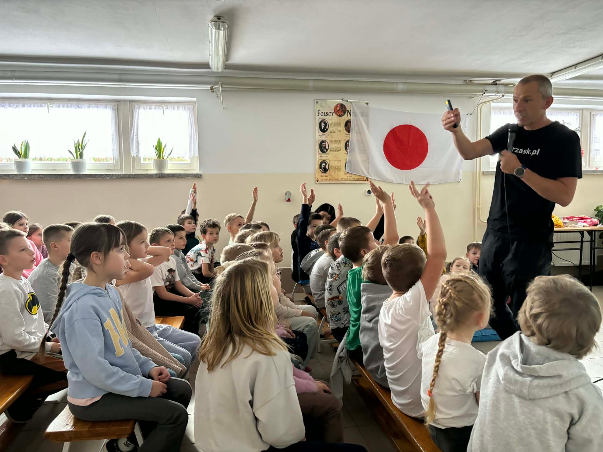 Podróżnik z pasją opowiedział o swej podróży do Japonii, a uczniowie z wielkim zaciekawieniem słuchali wspomnień z pobytu w "Kraju Kwitnącej Wiśni". Poznali tradycje, obyczaje mieszkańców, święta i codzienność Japończyków.